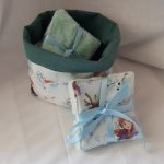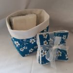 Le lot comprend 7 lingettes réutilisables avec sa petite panière de rangement assortie à 18€